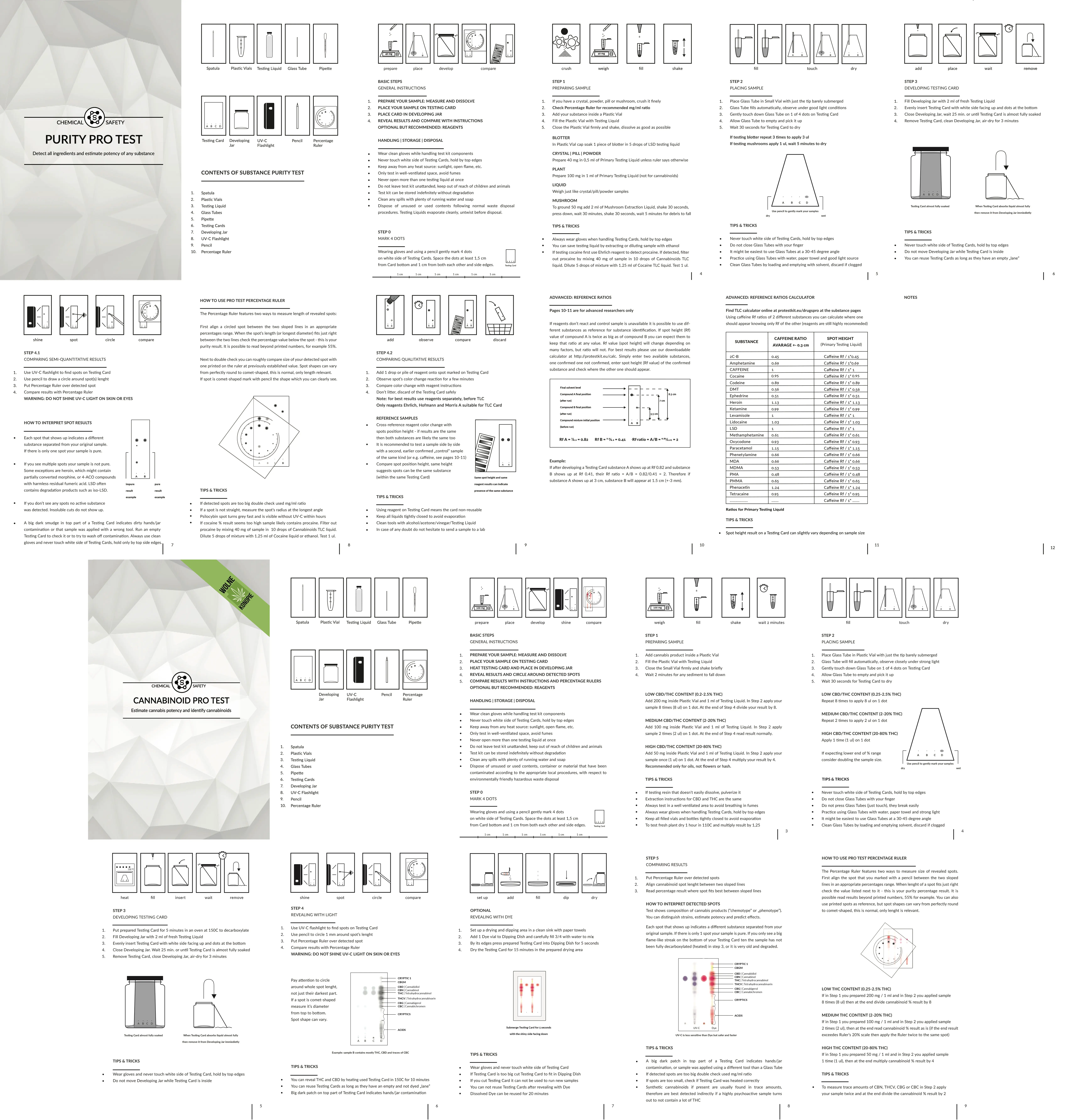 PRO Test Kit for Cannabinoid Potency is designed for checking number and amount of substances in crystals, extracts, plants, powders or solutions. This thin layer chromatography (TLC) kit is best for THC, CBD and more.